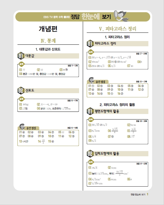 EBS 등업신공 중학수학 중 3(상) 답지 올립니다.