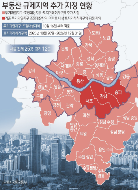 1. 서울 전역 + 수도권 12곳, '투기과열지구' 지정 대상 지역: 서울 25개 구 전부 + 경기 과천, ...