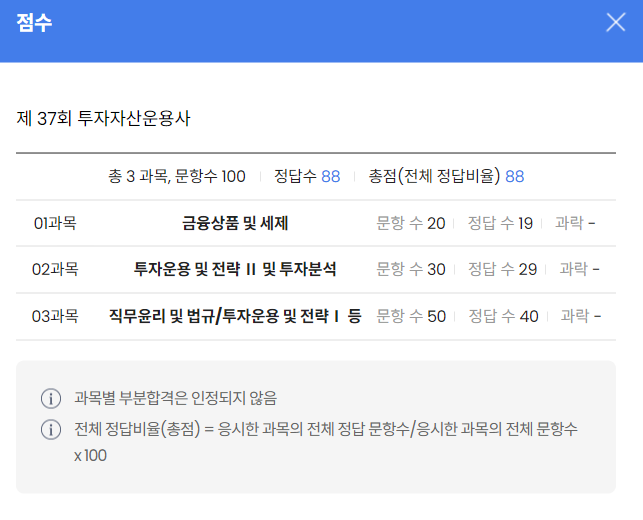 2024년 37회 투자자산운용사 자격시험 결과 발표 - 비전공자, 앗싸 20학점!