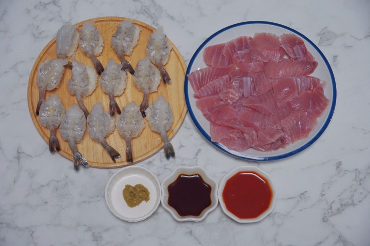 곰곰 황다랑어 통뱃살, 청미새우 초밥용, 백미새우 초밥용 구매해서 집에서 푸짐하게 해먹기 자 내돈내산 ...