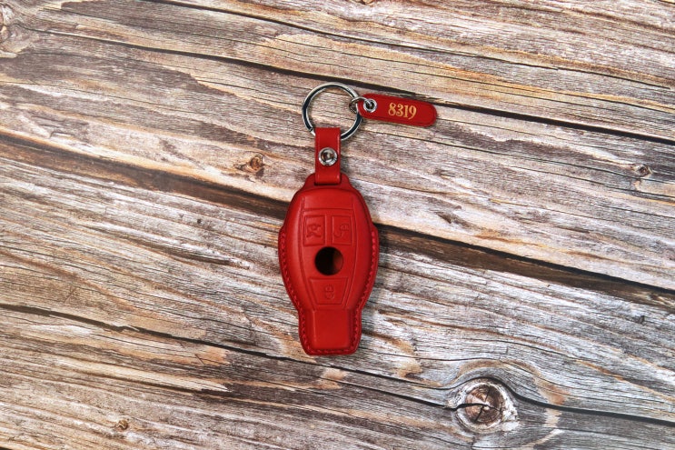 벤츠 가죽 키케이스 레드 컬러로 제작해보세요.