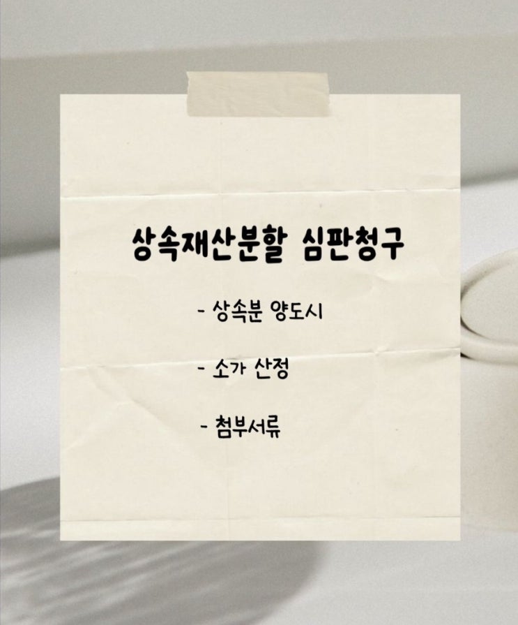 오늘은 '상속재산분할' 심판 청구 신청에 대해서 간단하게 정리해보겠습니다. 상속재산분할의 경...
