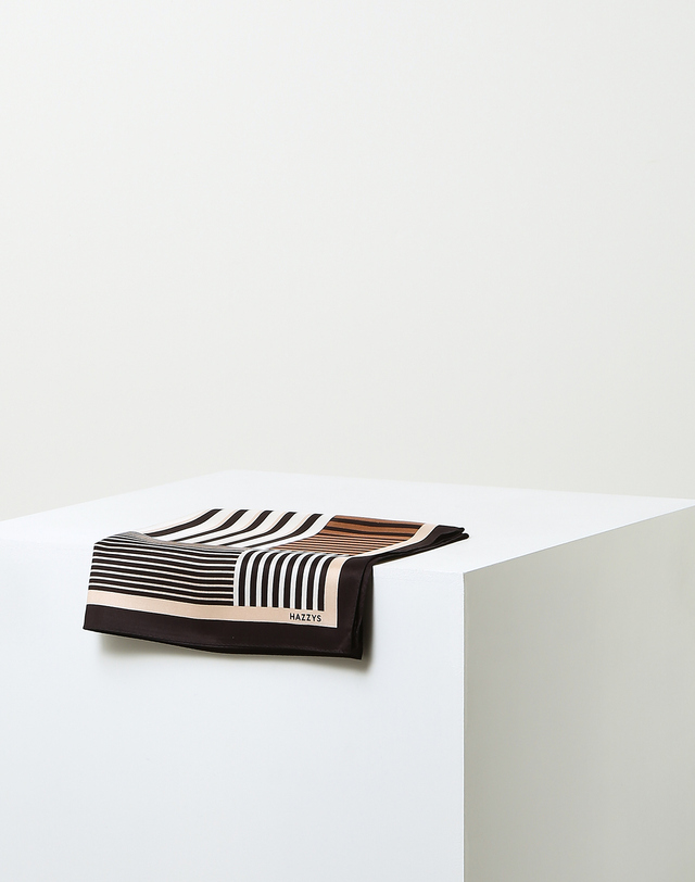 [백화점 정품] 헤지스 브라운 스트라이프 실크 사각 스카프 HIMU5E802W2 여성 고급 럭셔리 간절기 데일리