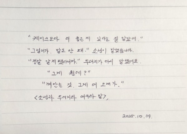 "케이크보다 더 좋은 게 있다는 걸 알았어." "그럴 리가. 말도 안 돼." 소년이 말했습...