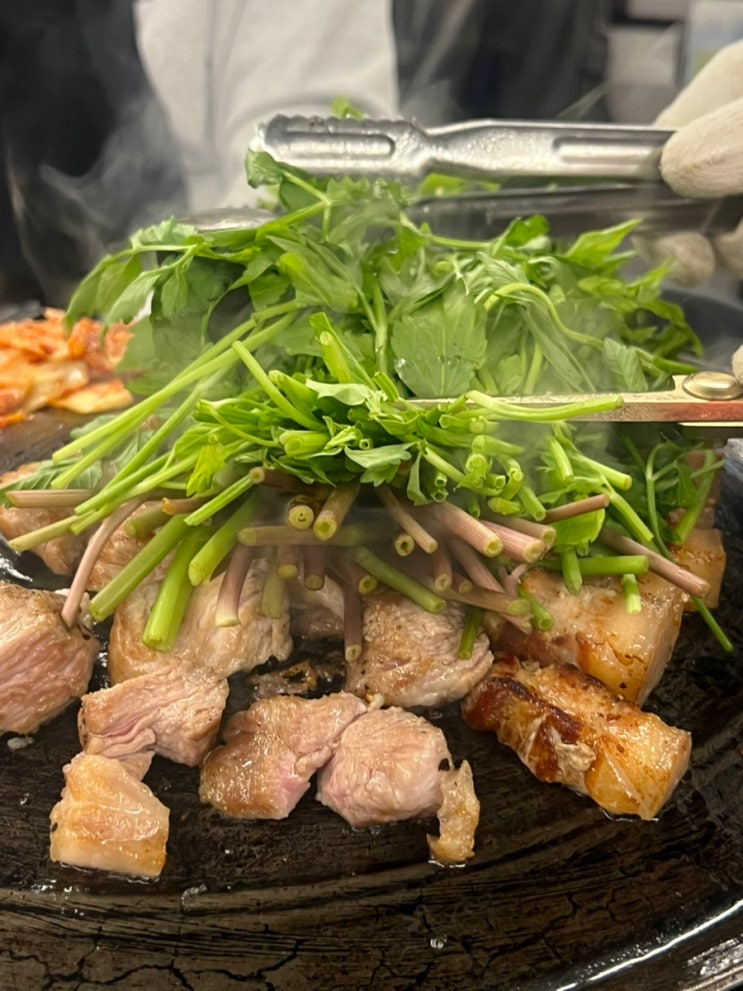 미나리는 꼭 시키세요 :) 목살 삼겹살 맛있는 곳! 미박삼겹살 & 특목살, 청도 미나리까지 완벽 조합! ...