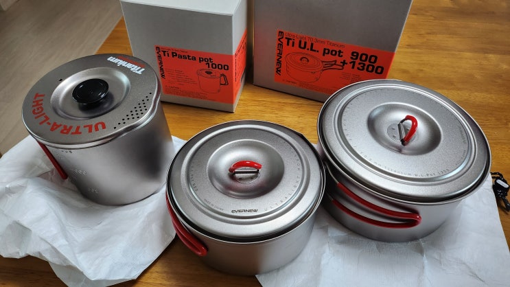Evernew Ti Pasta pot 1000 & Ti U.L pot 900 + 1300