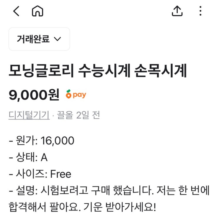 당근마켓 수능시계 카피라이팅 | 사람은 시간을 사지 않는다. 자신에게 필요한 기운을 산다.