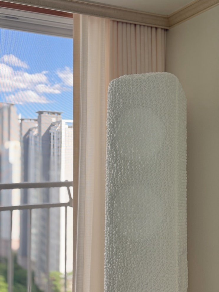 지난번에 싫증난 커텐으로 스탠드에어컨 커버를 만들어 덮어 씌웠었는데 이번엔 또 다른 커튼리폼. 이번엔 ...