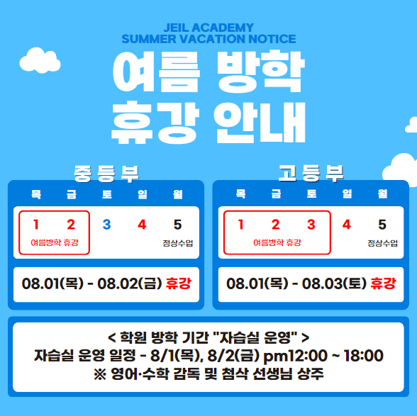 학원 여름방학 안내