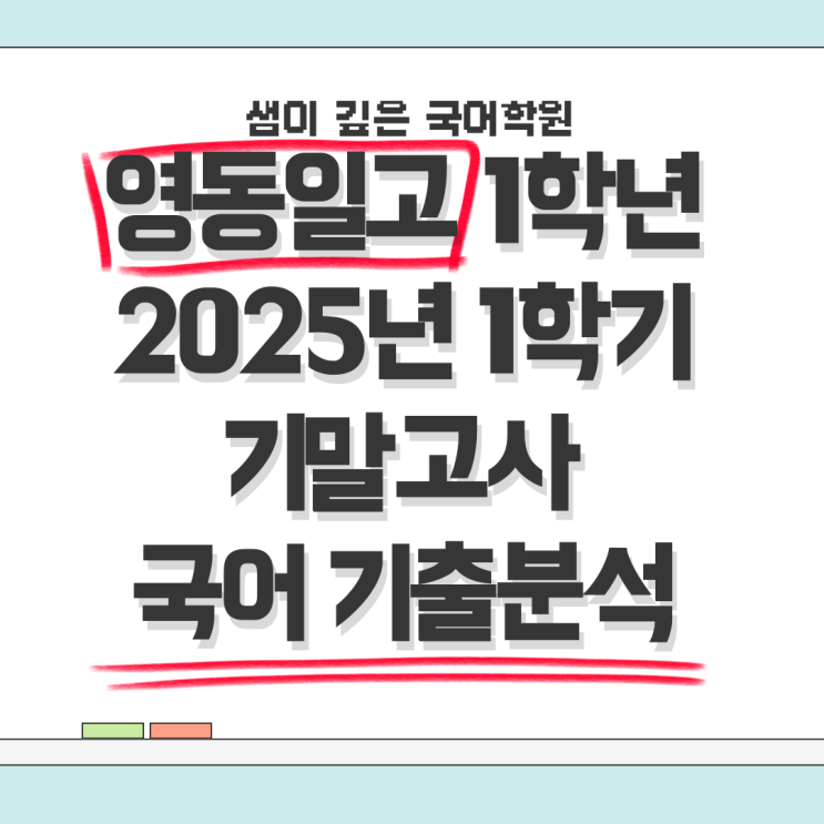 안녕하세요, 샘이 깊은 국어학원입니다. 2025년 1학기 영동일고 1학년 국어 기말고사를 분석하여 출제 경향...