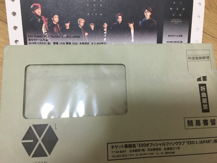 엑소 쿄세라돔 티켓 도착!! 9일은 아레나 10, 11일은 1층 하단 ...
