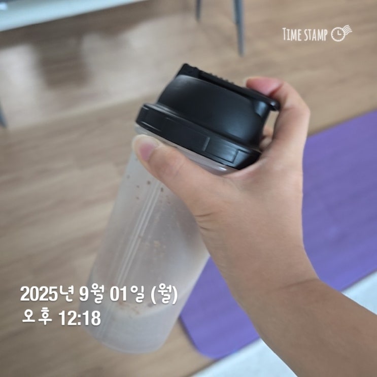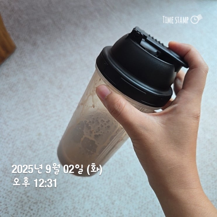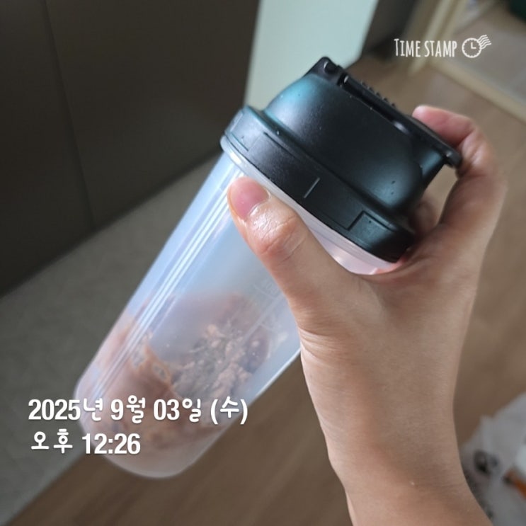 스위치온 다이어트 7일차! 늦잠자서 고민하다 먹은 단백질; 고민하다먹어서 컵에 대충 마심.. 안섞임ㅜ 단...