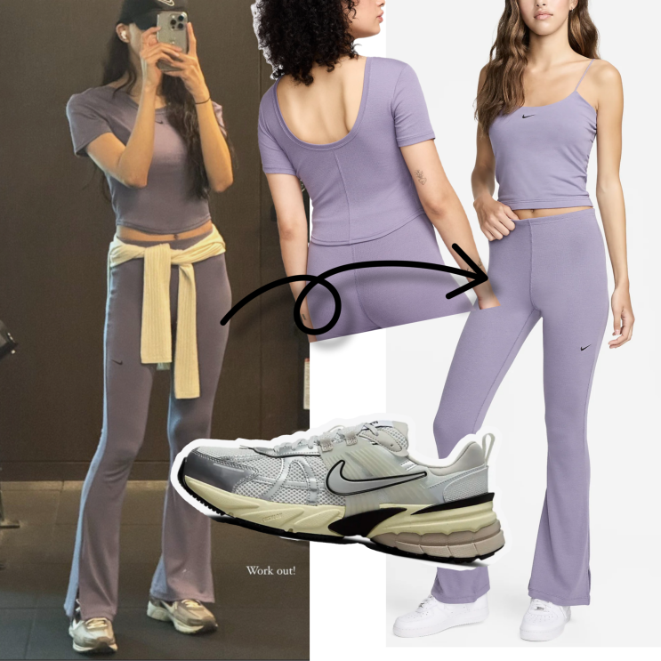 지난 레드 컬러의 트레이닝 세트에 이어 금새록은 연보라 컬러의 나이키 반팔, 니트 바지 셋업을 선보이기...