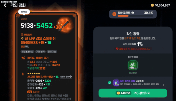 [마비노기 모바일] 대검전사 무기 16강 성공 강화재연소촉매 모이면 무기 강화 한번씩 눌러주는데.... 맴버...