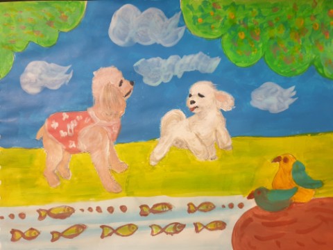강아지 그림 : 누나야~ 나만 믿고 따라와.