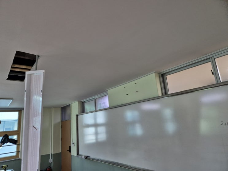 광주광역시 전자칠판+칠판보조장 도입사업으로 꾸며진 실 사진입니다.(고1 전체 교실) 특이점은 칠판보조장...