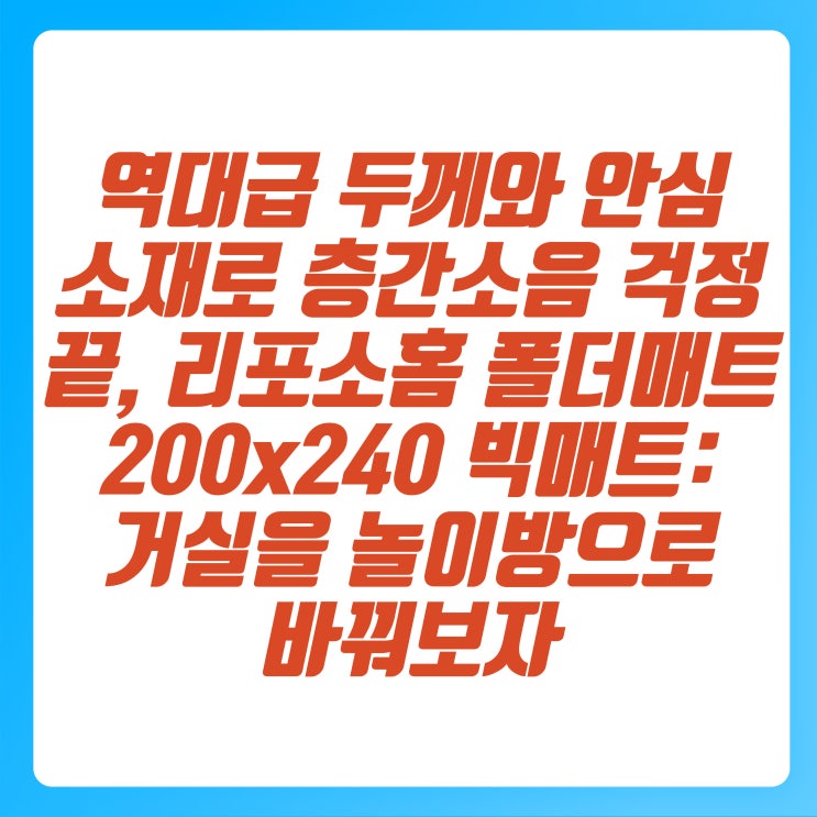역대급 두께와 안심 소재로 층간소음 걱정 끝, 리포소홈 폴더매트 200x240 빅매트: 거실을 놀이방으로 바꿔보자!