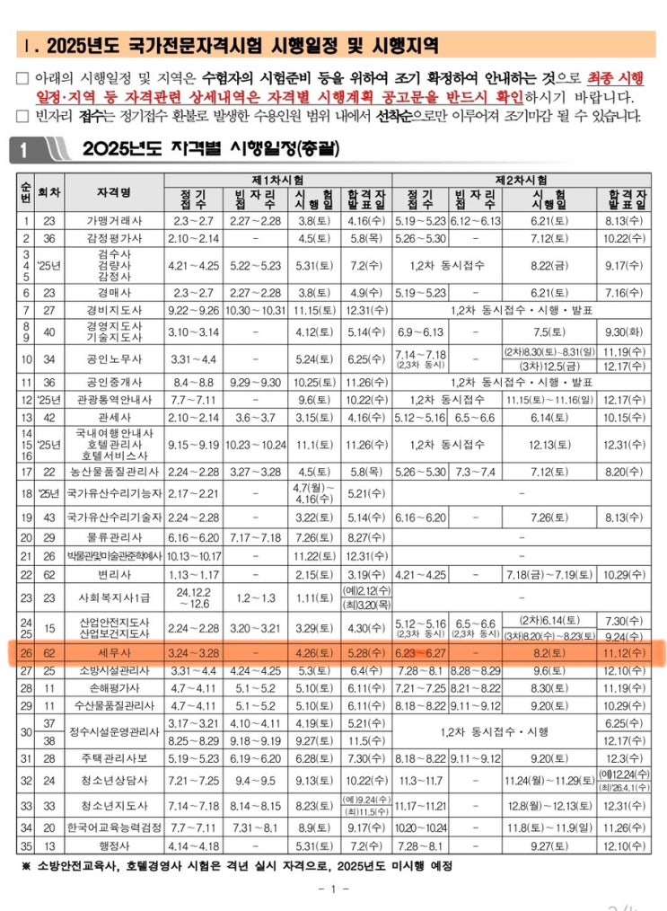 2025 세무사 시험일정