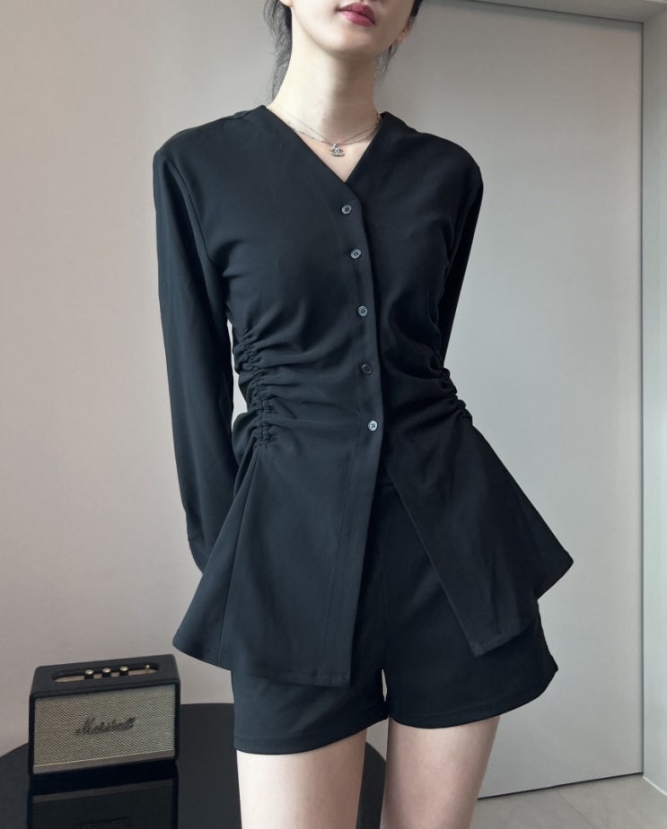 환절기 멋스러운 허리 스트링 셔츠! 허리라인을 강조해 주고 스판 함유가 있는 원단으로 신축성이 좋아서 ...