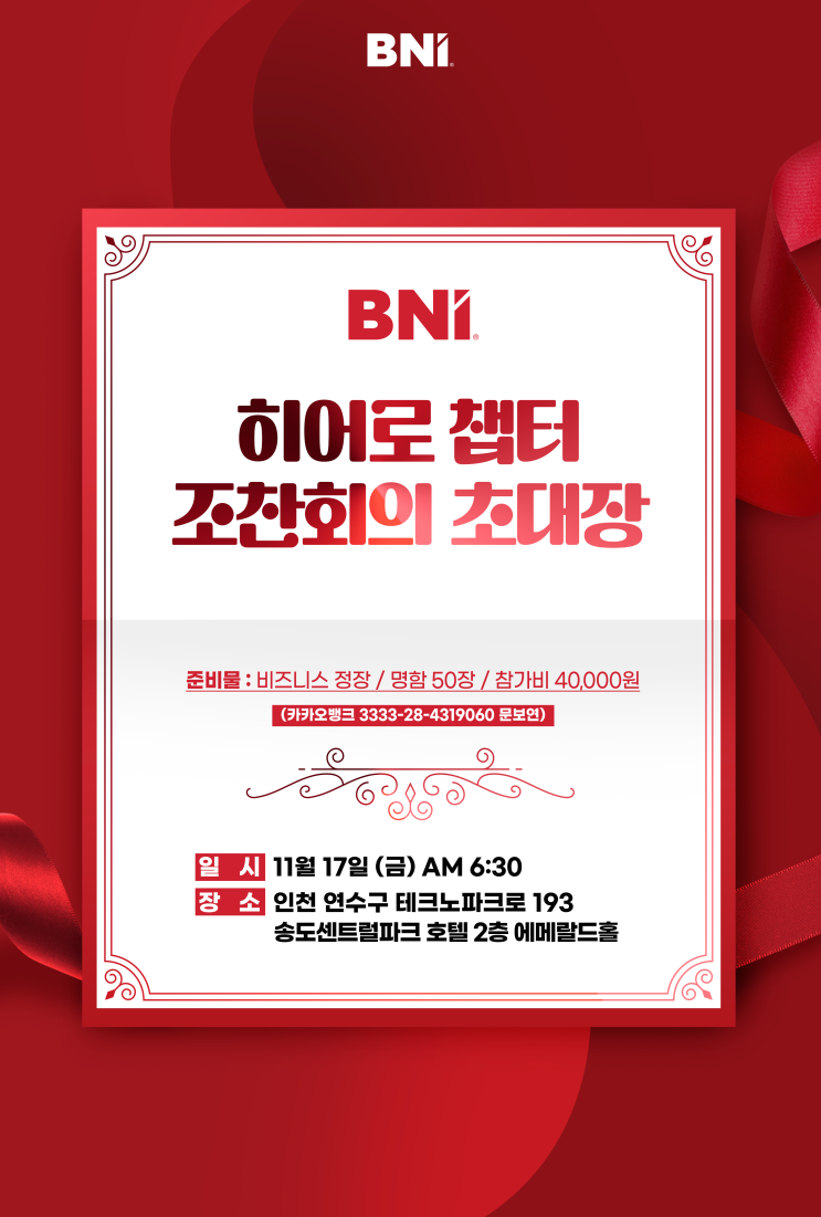 비즈니스 협업 공동체 BNI 인천 히어로 챕터 사업가모임에 초대합니다.
