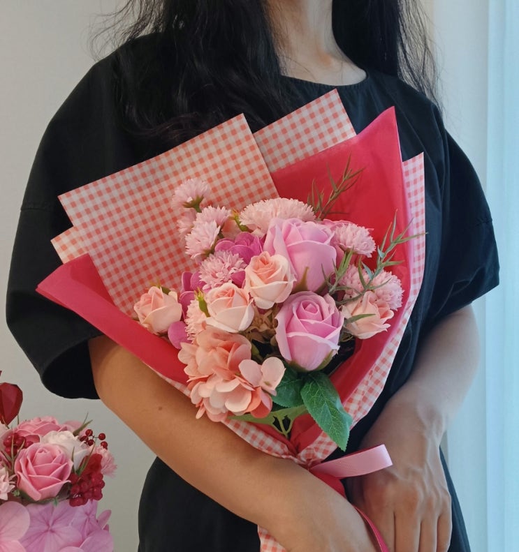 조화 믹스 꽃다발 생화 못지 않게 이쁜 실크 플라워와 비누꽃으로 시들지 않는 꽃다발 입니다. 색화지를 이...