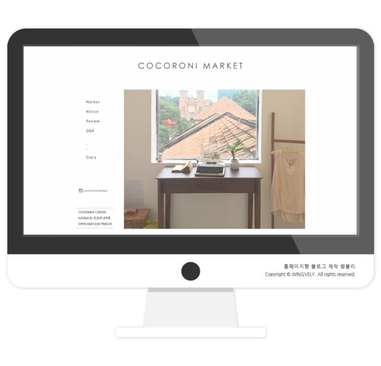 홈페이지형 블로그 스킨 제작 윙블리 마켓블로그 코코로니 완료
