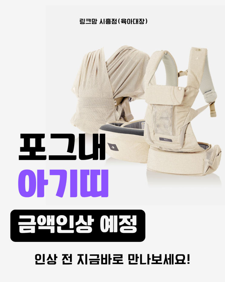 안녕하세요 육아용품 할인매장 링크맘 시흥점 (육아대장)입니다~! 인기아기띠인 포그내가 다음달 금액 인상...