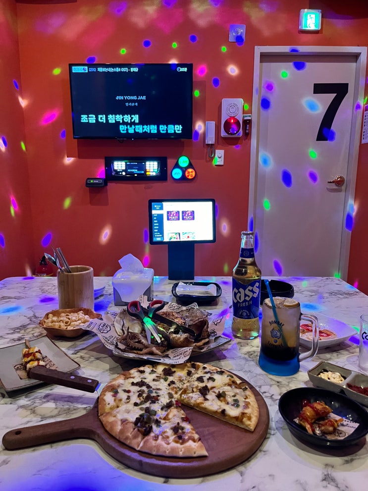 명지 노래방 파티뮤직타운 기본 안주부터 피자가 나오는 노래타운 !