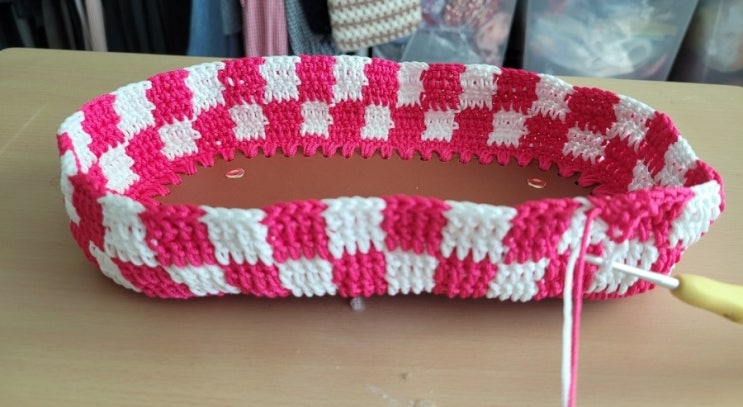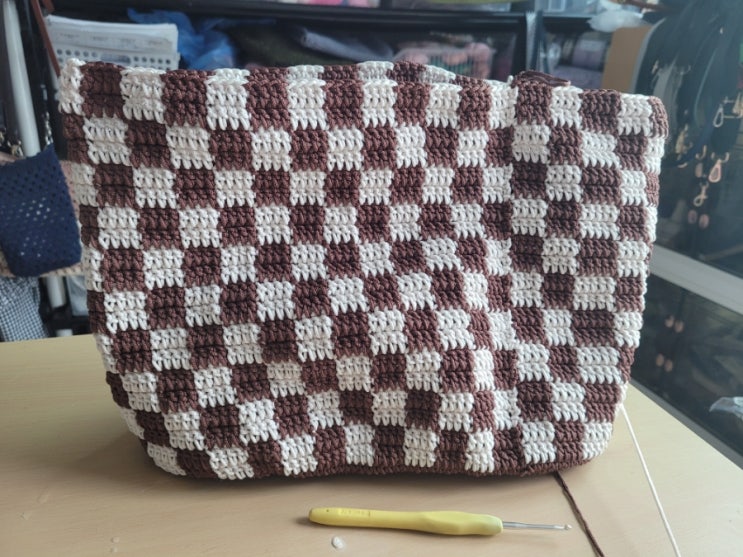 코바늘~ 체커보드뜨기. 가방