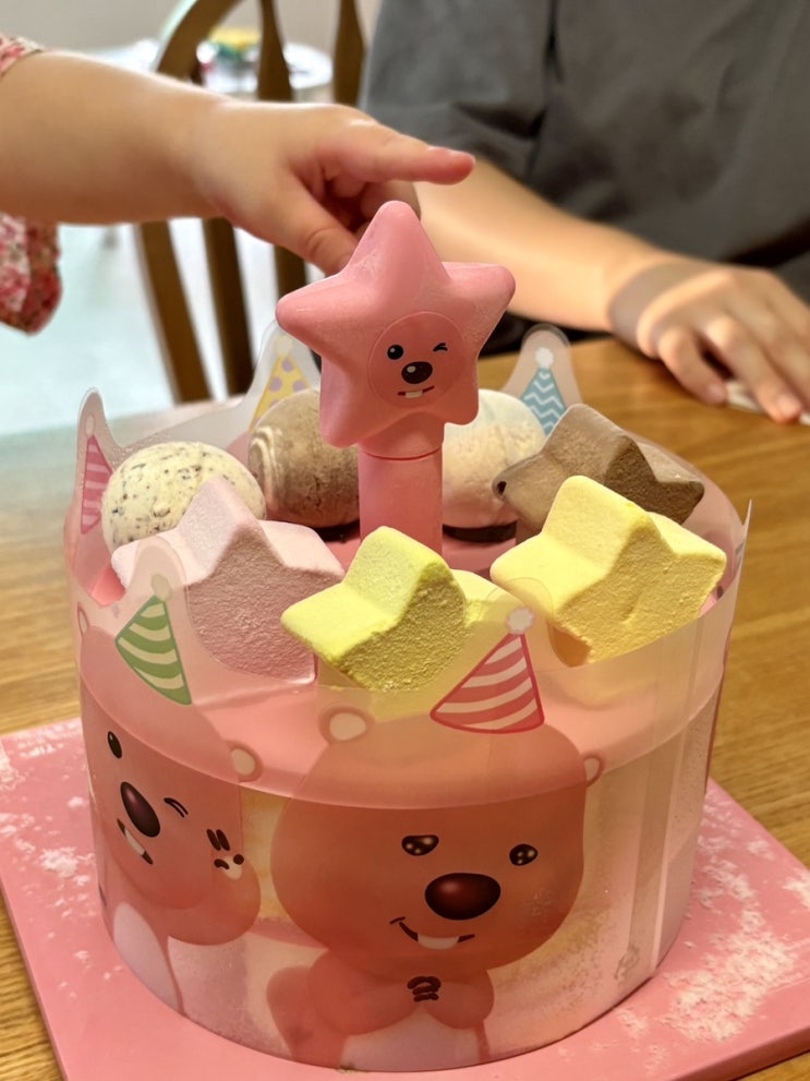 귀여운 잔망루피 케이크! 저 가운데 별은 포크였다. 핫케이크에 네스퀵 넣어 초코 핫케이크 먹기 하겐다즈 ...