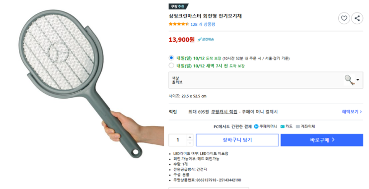 캠핑 전기파리채 구입기_삼정 회전형 전기모기채