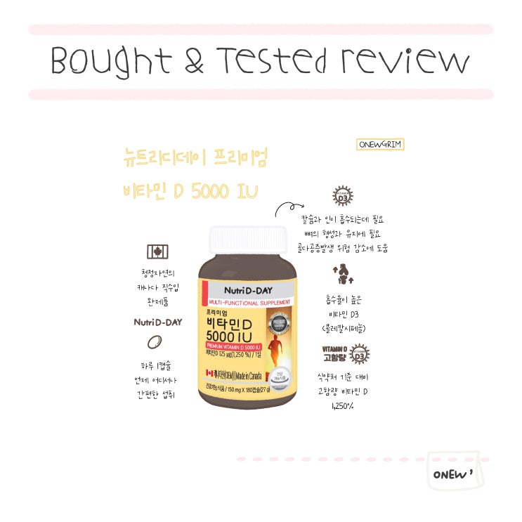 오늘의 리뷰는 뉴트리디데이 프리미엄 비타민 D 5000 IU 뉴트리디데이 비타민 D 5000IU 햇빛 대신 하...
