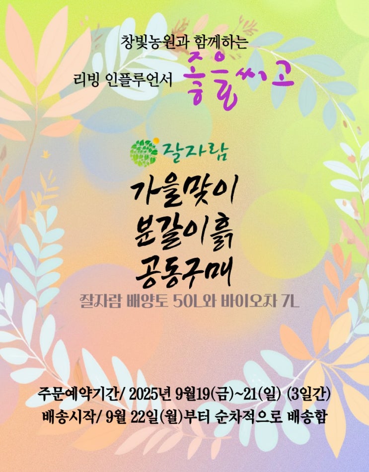 #25년가을분갈이흙 #잘자람배양토50리터 #잘자람바이오차7L #9월19일(금)~ 22일(일) 3일간 #좋을씨고네꽃...