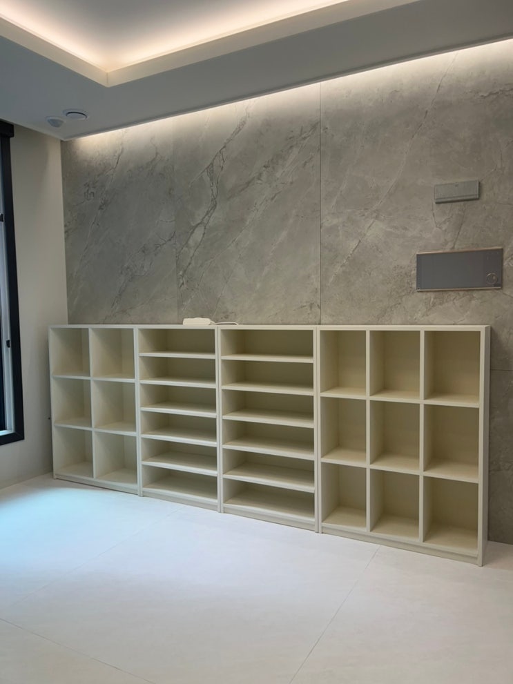 돌아기 심플룸 전면 책장 3단 화이트 2개 거실 설치 후기