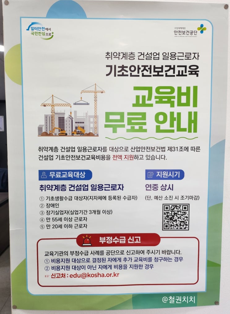 기초 건설안전교육 교육비 무료 망우,구리 일하는 곳에서 필요해서 기초안전교육 내돈내산으로 교육받고 왔...