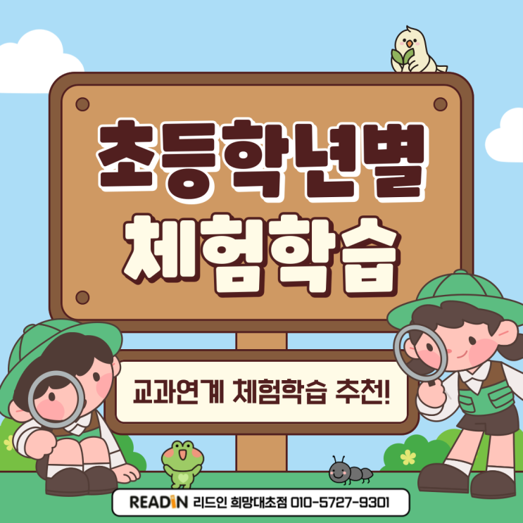안녕하세요 :) 리드인 희망대초점입니다. 초등학생 시기에는 직접 보고 듣고 만지며 배우는 체험학습이 무...