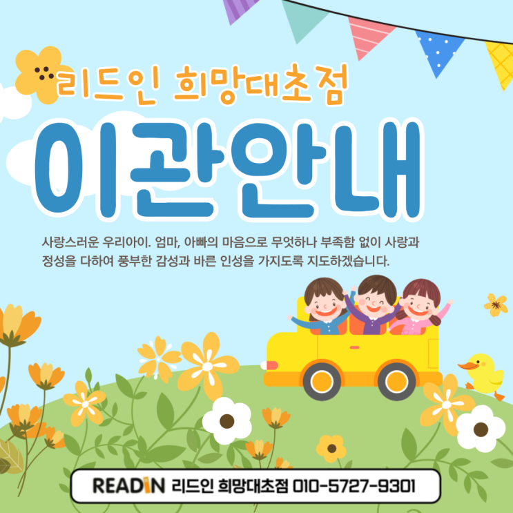 안녕하세요, 리드인 희망대초점 입니다. 그동안 신규 원생 접수를 받지 못해 불편을 드린 점, 깊이 사과드...
