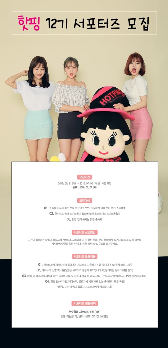 여성의류쇼핑몰 핫핑 12기 서포터즈 모집!