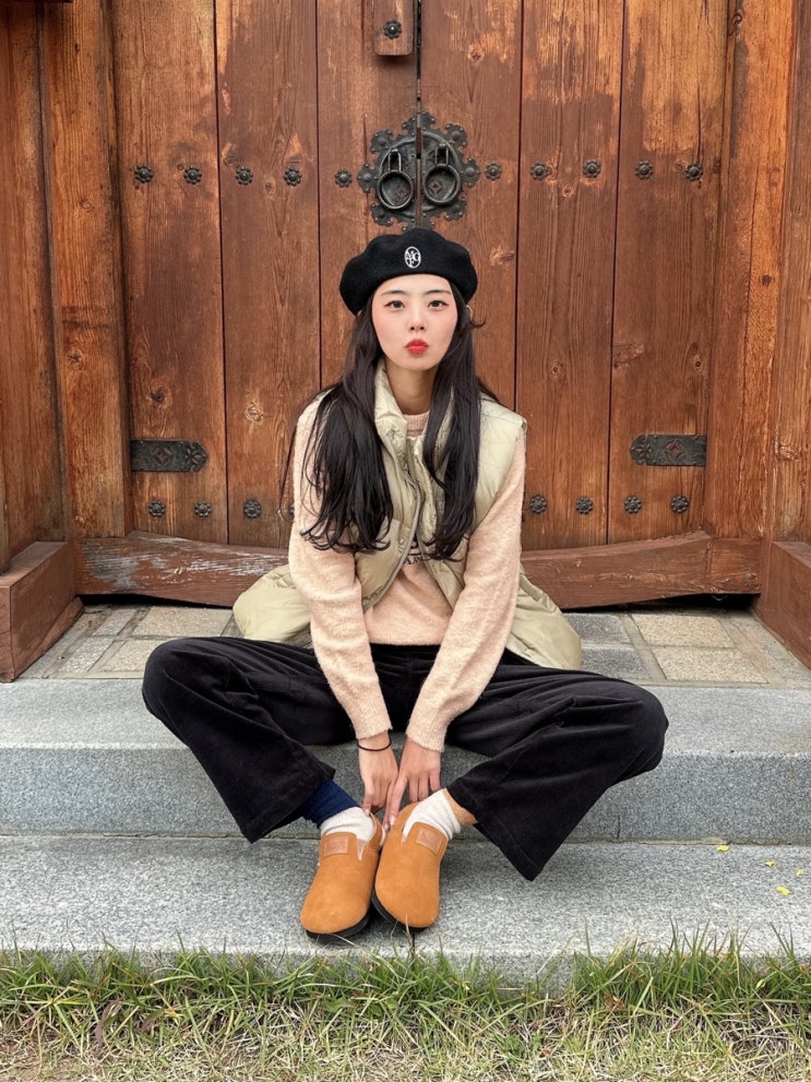 마리떼프랑소와저버 패딩 조끼, 코듀로이 팬츠, 클로그, 니트 겨울 여자 코디❤️