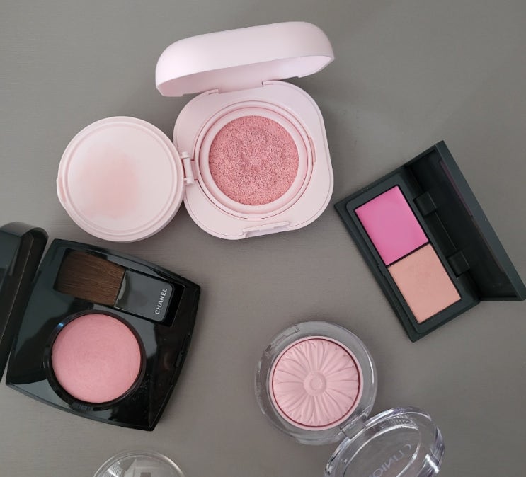올해 구매한 블러셔들 중 블로그에 안올렸던 것들을 써보기로 했다. 왼쪽부터 1. 샤넬 쥬 꽁트라스트 44 나...