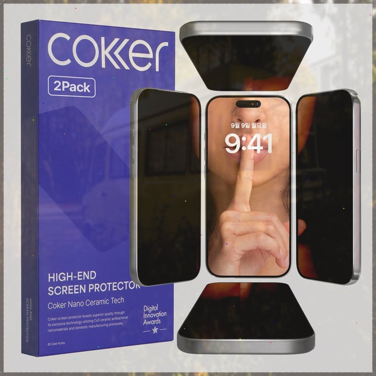 [내일배송] 코커 제로노출 360도 아이폰 강화유리 사생활보호필름 아이폰15 프로, 2매입 [내일배송] 코커 ...