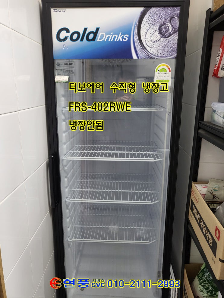 터보코리아 제품 터보에어 업소용 수직형 냉장고 냉장 안됨 모델 FRS-402RWE 2021년식 여기저기 점검...
