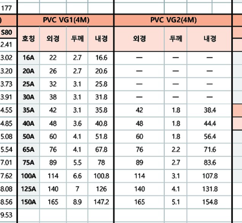 PVC파이프 규격