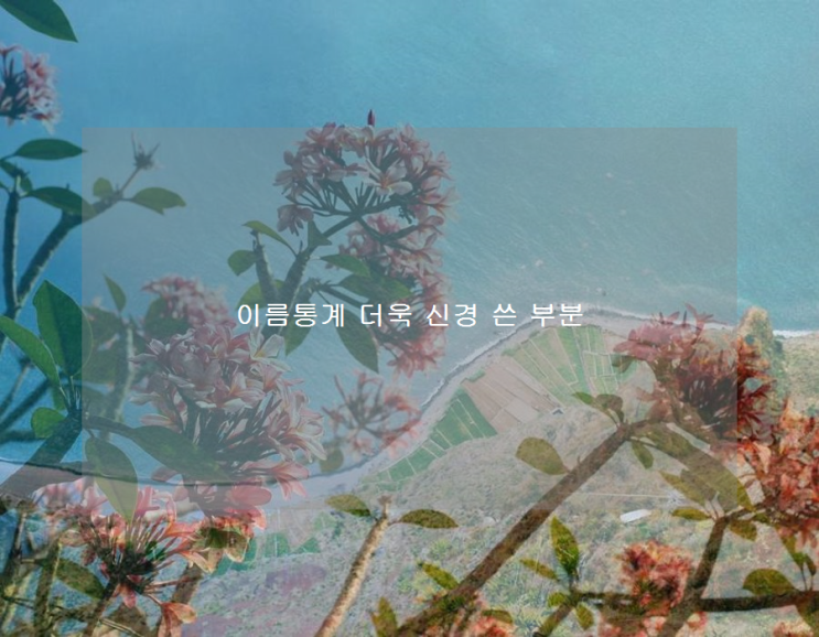 이름통계 더욱 신경 쓴 부분 특히, 이름 통계는 세대 간의 탯줄과도 연결되어 있어서 애착이 강하게 생겼고...