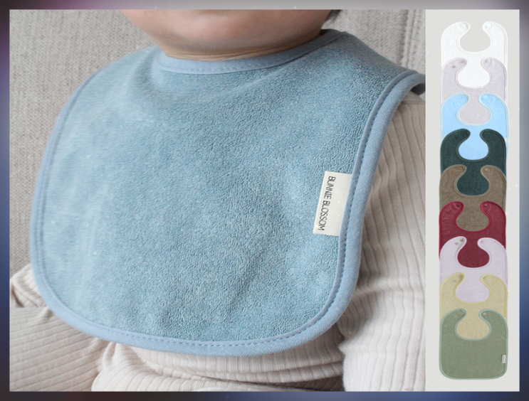 바니블라썸 턱받이 아기 두겹 테리빕 페일블루