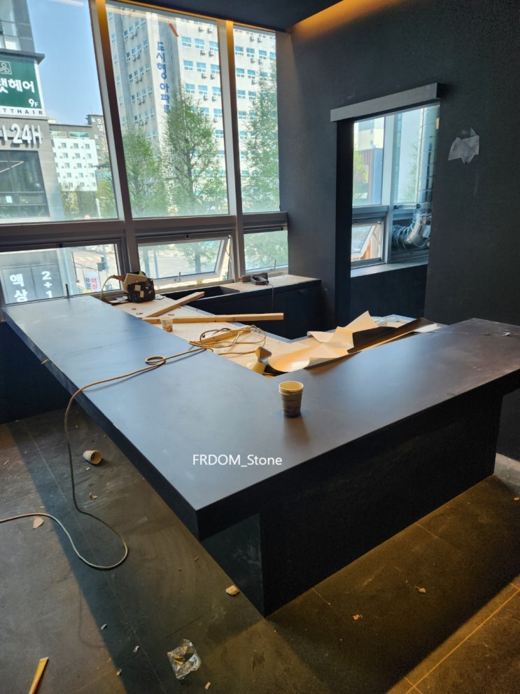 오마카세 바탑 테이블 트라버틴 대리석, 박판타일 토탈블랙