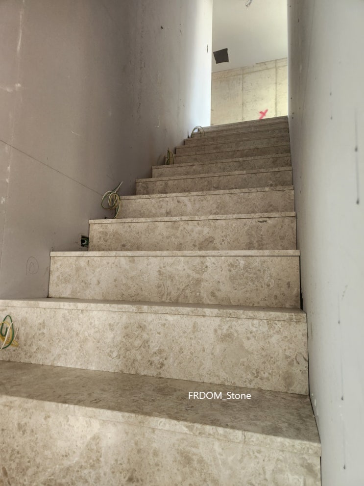 단독주택 실내 바닥 계단 대리석 시공