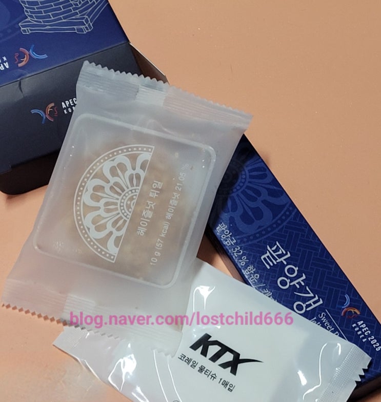 APCE정상회의 기념 KTX 특실 간식 서비스였던 에이팩 세트ㅋ(헤이즐넛 튀일 & 팥양갱)