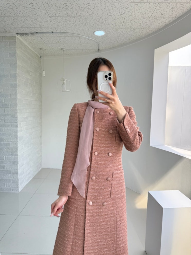 Balm 트위드 원피스코트 겨울 하객룩 연말룩 코디