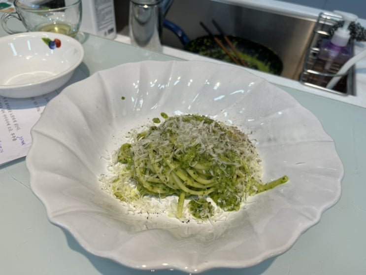 선생님이 시범으로 요리하는거 보여주시고 시식하면서 먹으라고 꼭 술도 같이 시음 .. ^^ 저번주까진 와인...